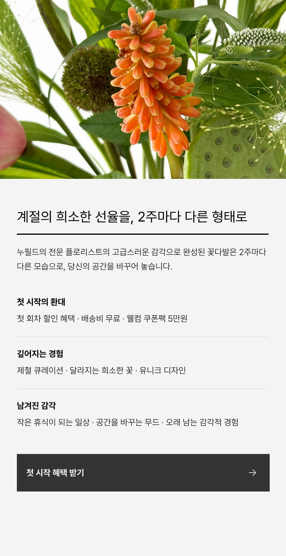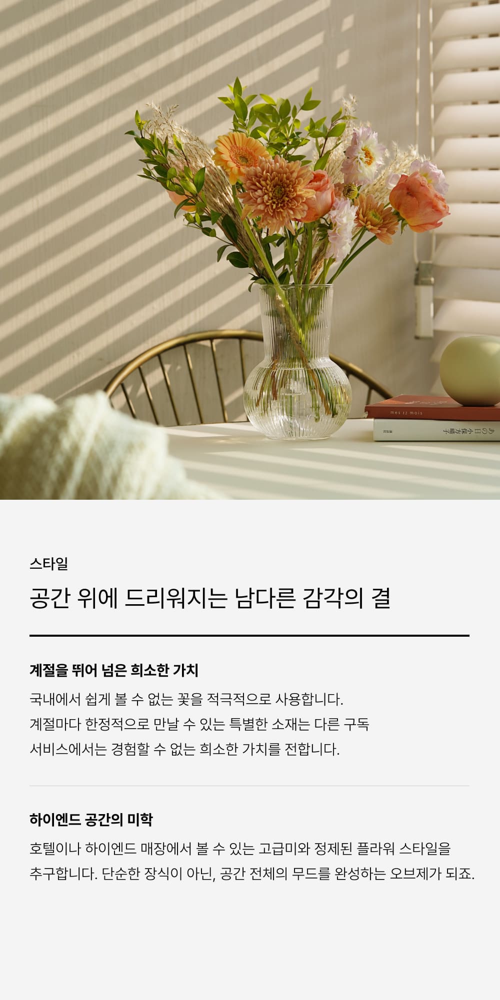 간결하면서도 강렬한 디자인의 포인트 꽃다발을 소개합니다. 작은 공간이나 가벼운 서프라이즈에 어울리는 쁘띠 꽃다발은 ‘작지만 강렬한 존재감’이란 컨셉으로 작은 공간에서도 빛을 발하죠. 당신만의 소중한 공간에 나만의 작은 정원을 꾸며보세요.