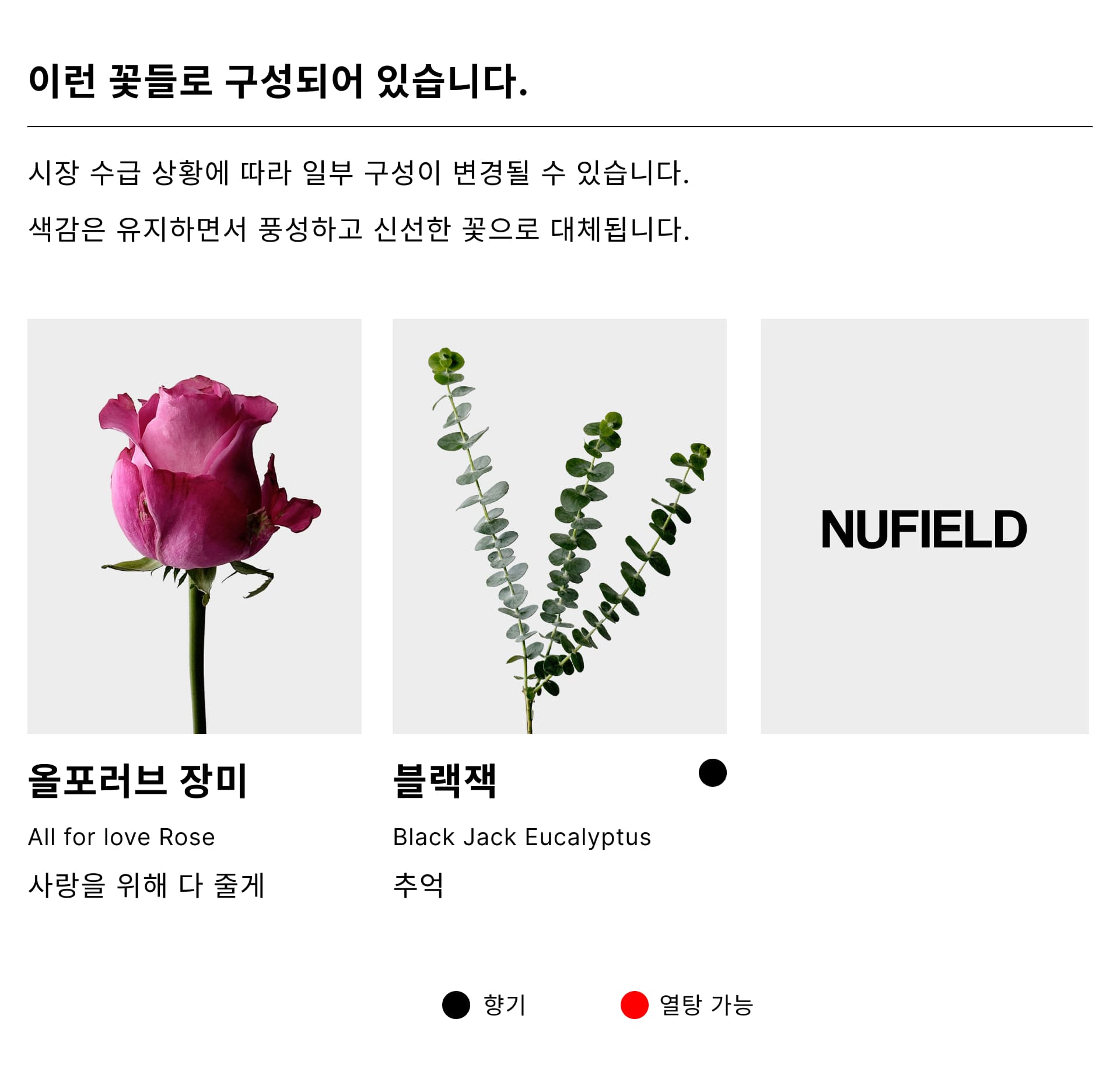 All for love은 '사랑을 위해 모든 것을 다 줄게'라는 꽃말을 지니고 있는 올포 러브 장미로 구성하여 마음을 전하고자 하는 감정을 아름답게 담아내보았습니다.