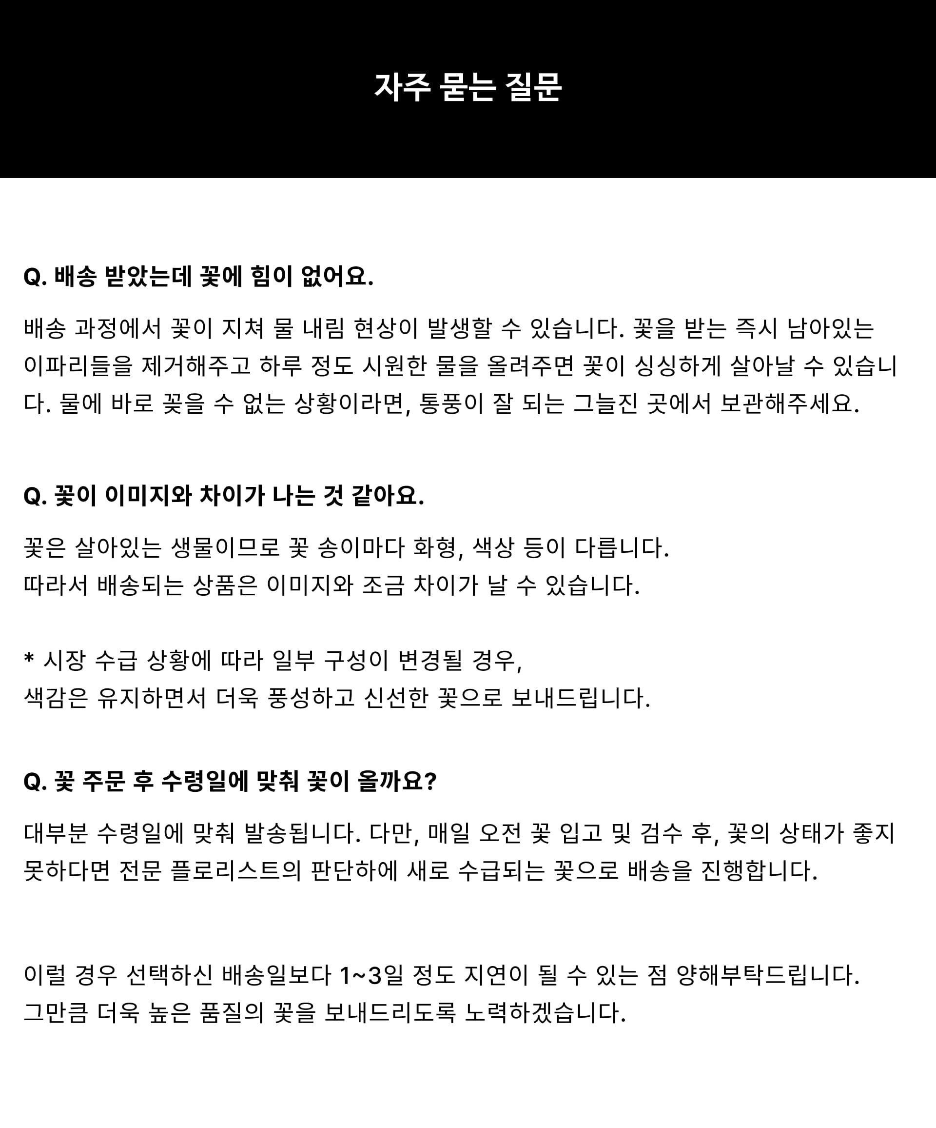 · 수령 즉시 상자에서 꺼내어 꽃을 감싼 포장을 풀어주세요.