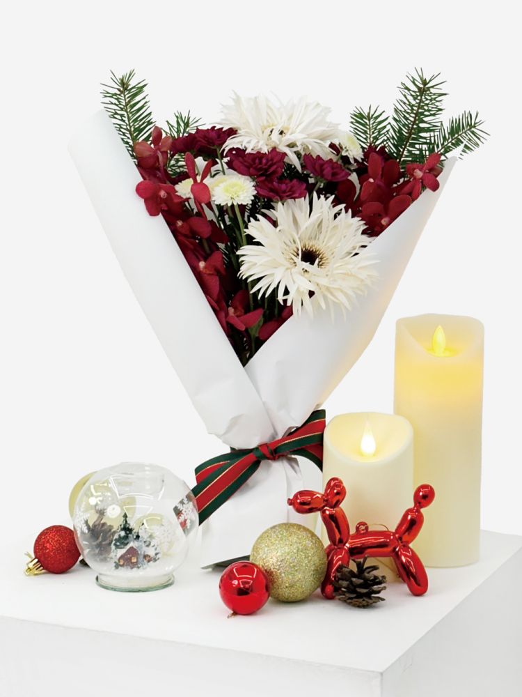 차가운 겨울 바람에 춤추는 실거베라와 크리스마스의 정석 레드가 어우러진 순수하고 찬란한 ‘Pure White Christmas’가 특별한 순간을 상상하게 합니다.